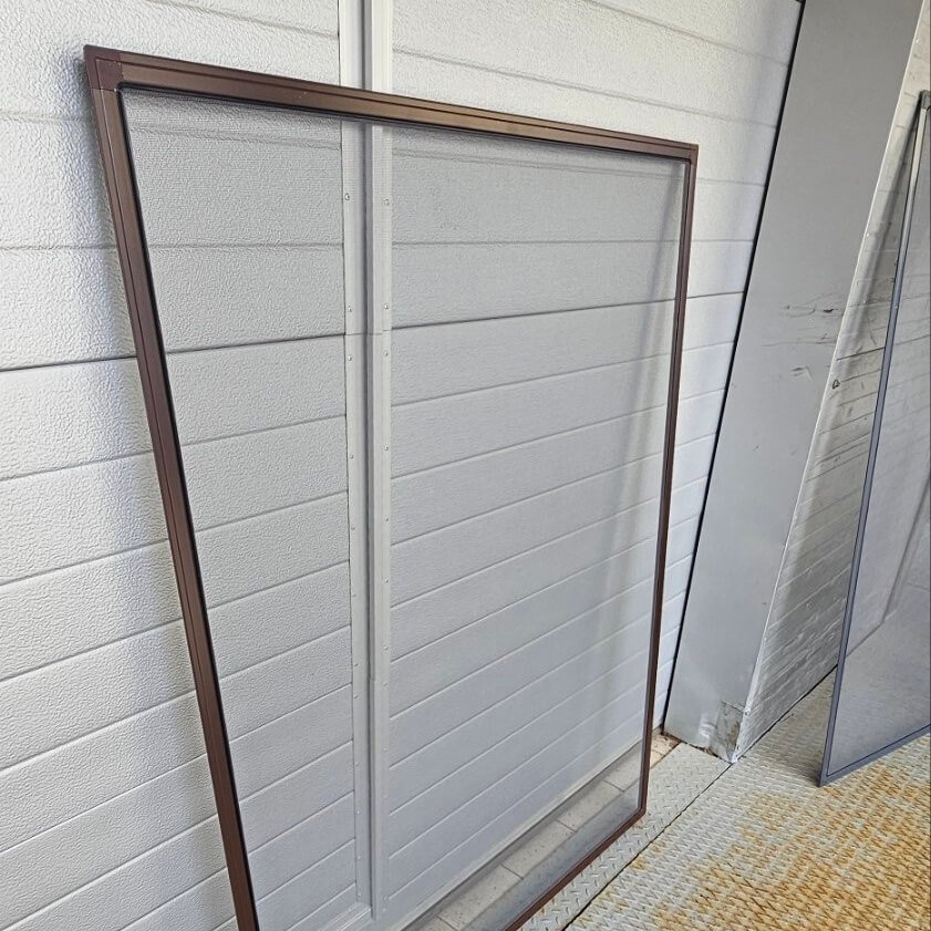 Sietveida rāmis ar brūniem profiliem. Loga rāmja minimālajam dziļumam jābūt vismaz 9 mm.