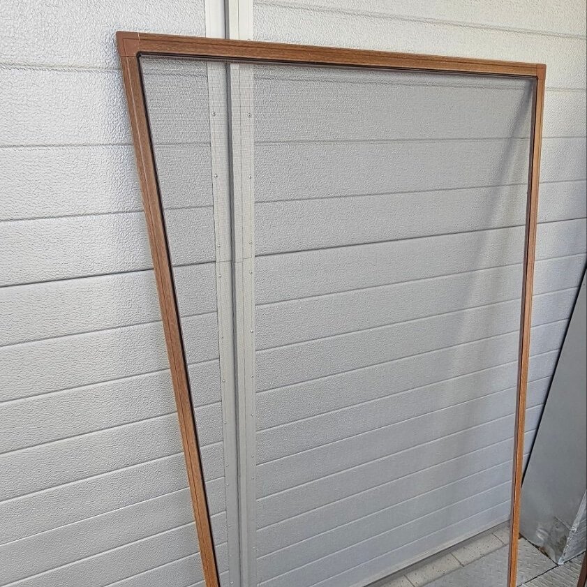 Tīkla rāmis ar zeltaina ozola krāsas profiliem. Minimālajam loga rāmja dziļumam jābūt vismaz 9 mm.